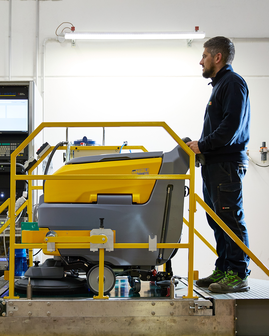 Des prototypes aux machines de catalogue, chaque produit Riello Cleaning Machines subit une longue série d'évaluations (jusqu'à cinquante articles) lors des phases de pré-test et de test proprement dit. Les tests visent à vérifier la résistance, la durabilité et la perfection de construction de chaque machine, en impliquant chaque élément dans les phases de test, des composants aux plastiques et à l'acier. Solidité de chaque produit, satisfaction de chaque client.